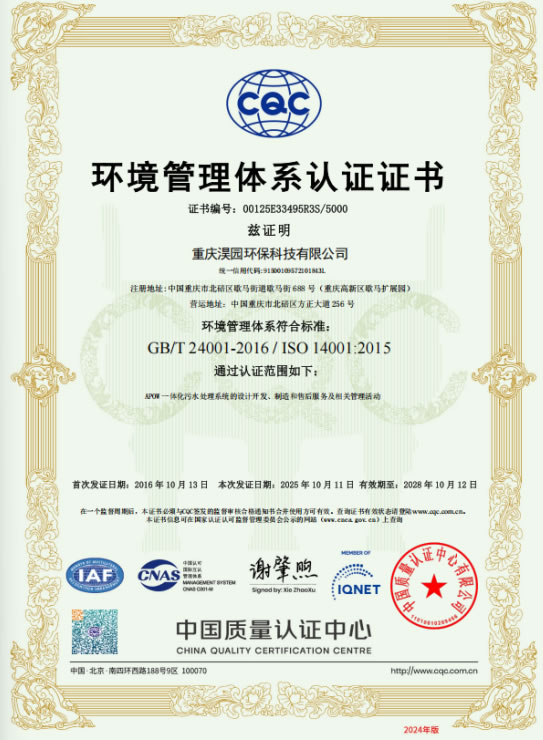 環(huán)境管理體系認(rèn)證證書
